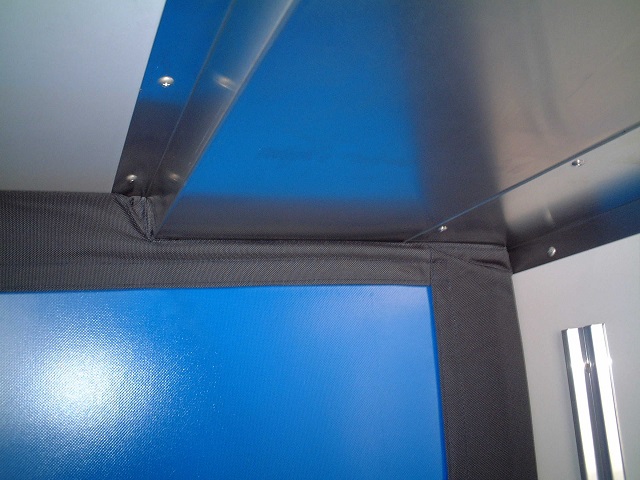 ソフト中仕切りの周囲は庫内壁面との密着性を高めるために、製作寸法を庫内寸法に対して少し大きめに製作しております。また、周囲にスポンジクッションを使用し、壁面の凹凸に追従するように密閉性を高めております。
